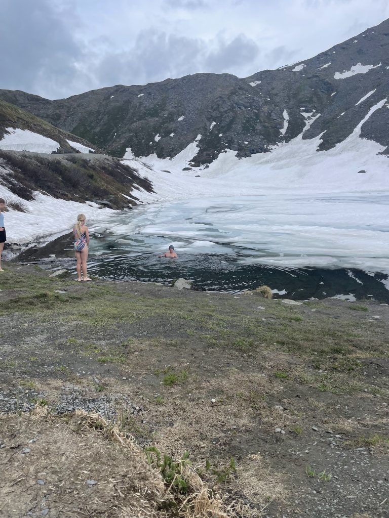 I attempted to swim in Lake Eklutna, but it was WAY TOO COLD!!!! I only swam 7 yards!!!